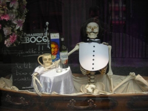 入り口では正装をしたドクロがお出迎えしてくれます。