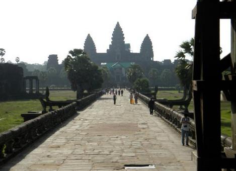 12世紀初期、アンコール王朝のスーリヤヴァルマン2世によりヒンドゥー教寺院として建設されました。なんと、建設には30年以上の年月を費やしています。東西に1,500m、南北に1,300m、幅が190mもある堀によって囲まれた寺院です。建物の多くは1970年代の内戦中に損傷を受けましたが、修理がなされ、1992年には世界遺産にも登録されました。