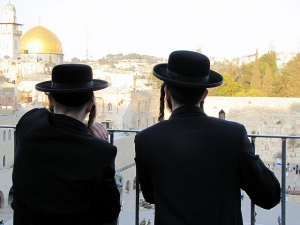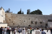 壁の前にはユダヤ教正統派の姿の男性も多く、観光名所である以前に、ユダヤ人にとって現在でも神聖な場所である事を忘れないでほしい。