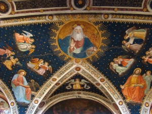 一般教徒側と僧院側をつなぐ唯一の小さな窓と僧院側のノアの箱船のフレスコ画がとくにおもしろいです。