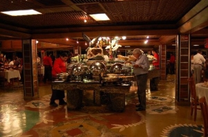 ビュッフェ形式で、お肉はウェイターが各部位を持って周り、その場で切り分けてくれます。さらにサラダやロブスターも少量ですが、置いてあるのでチェックしましょう。