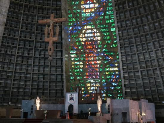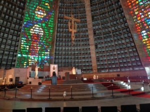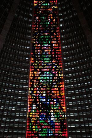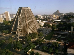 メトロ「カリオカ駅」から歩いてすぐの場所に、ピラミッドのような無機質な建物が目を引きます。1964年から1979年にかけて建設され、リオ·デ·ジャネイロの守護聖人サン・セバスティアンに捧げられています。直径106メートル、高さ96メートル、収容人数2万人のこの建物は、教会には珍しい円錐形をしています。円錐形の形は、人々と神との等しい関係、近さを表しています。