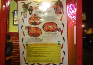Taqueria cancunは、Missionストリートに位置するメキシコ料理店です。週末は深夜2時まで開いており、価格も手頃。時間や予算が少ない場合にも活躍するスポットでしょう。こちらの特徴はなんといっても大きなブリトー!海外では当然なのかもしれませんが、10ドル以下(2014年7月現在、ベジタリアンブリトーは$6.25です)でこのヴォリューム、日本ではまずお目にかかれません。それだけではなくさらに無料でナチョスが付いてきます。お店は非常にカジュアル。忙しいためか前のお客さんの器が残っていたりすることもありますので、きれいにこだわる方には少々不向きです。