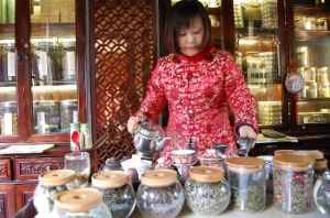 豫園に訪れた後、ちょっと休憩をしてみませんか?入り口の手前にあるハス池の方へ進みましょう。ジグザグの九曲橋を渡ると池の中心に湖心亭があります。こちらは1855年オープンの上海最古のお茶屋さんで、清代に豫園と共に建てられました。外装もさることながら、レトロで趣のある店内です。さあ、さっそくおいしい中国茶や工芸茶を頂きましょう!建物は2階建てで、階が上がるごとに値段が上がる方式です。(※例えばサンデーですが、テイクアウトですと15元、1階で食べると30元、2階ですと50元となります)。アイスクリームは10元で、味はほうじ茶か抹茶か選べますよ。1階は茶葉や茶器のお土産コーナー。ゆっくりと景色を楽しみながら飲むなら2階がおすすめです。お茶を注文すると高野豆腐、ウズラの茶卵、乾燥ナツメ、ちまきなどの数種類のお茶請けが無料で付いてきます。(※内容は異なることがあります)お湯を注ぐと花開く、工芸茶を頂きましょう。
