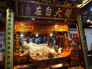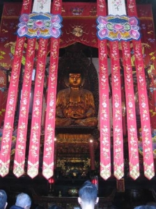 建物は典型的な宋代宫殿様式で、通常の寺のように「天王殿」「大宝殿」「般若丈室」等が建ち並びます。ここの注目はなんといってもミャンマーから来た仏様!白玉石で造られた彼らは神秘的で、見ると心が洗われるかのよう。玉仏が飾られているのは「玉仏楼」と「臥仏堂」。「臥仏堂」にはミャンマーから来た1体「釈迦涅槃像」が、「玉仏楼」は別途10元が必要ですが「釈迦牟尼仏」が祭られています。残念ながら撮影は禁止ですが、玉のように愛らしい仏様にうっとりしちゃう事間違いなし!ちなみにお寺の中庭に面して「上海玉仏寺素斎部」という中国レストランも併設されています。こちらではヘルシーな精進料理を食べることができますよ♪
