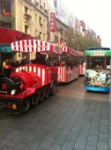 歩行者天国の端から端まで、電動カートに乗って雰囲気を楽しめます。片道5元(2014年6月現在)です。ちょっと疲れた時の移動にもいかがでしょうか?