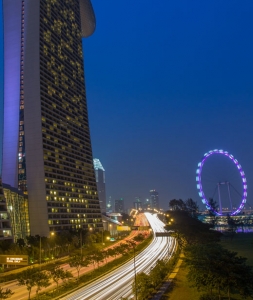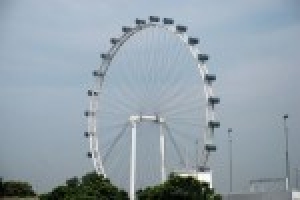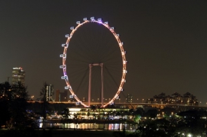 ■マリーナ地区にそびえる世界最大級の観覧車、シンガポール・フライヤー。28人乗りのカプセルが地上165メートルまで上がり、約30分で一周し、シンガポールを見渡すことができる。カプセルの大きさから、室内でハイティ、ディナー、さらには結婚式までできてしまうという