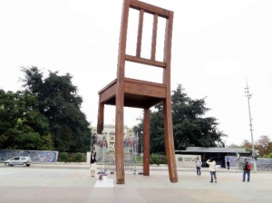 スイス人芸術家ダニエル・ベルセによる巨大な彫刻作品。全部で5.5tの木材を使って作られており、その高さは12mに及びます。4本の脚のうちの1本が折れているが、これは地雷やクラスター爆弾への反対を象徴しており、ジュネーヴを訪れる政治家にこれらの兵器のことを思い起こさせる役目を果たしていますす。