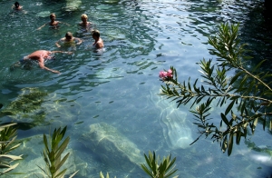 ギリシャ・ローマの遺跡の円柱に腰掛けてお湯に浸かる、そんな贅沢な体験ができる場所が、このパムッカレ温泉。何と水の底に本物の遺跡の柱や石材がごろごろと転がっているんです。温泉とは言っても水温は35度程度なので、プールと呼ぶのがふさわしいかも。透明度の高い青い水に浸かりながら、古代の栄華に思いを馳せる、そんな変わった体験のしたい方は是非。