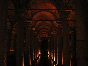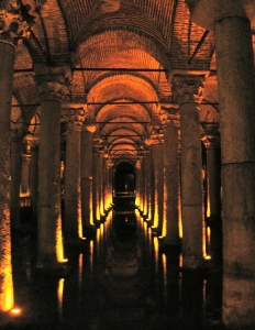 4世紀から19世紀まで利用された巨大な地下貯水施設。広さは縦140M、横70M、高さ8M程。列柱とアーチが続き、今でも足元にはうっすらと水が溜まっており、そこはまるで地上とは別世界。帝国各地から集めた柱を使用して作られたため、柱によって形状が異なっています。かつては20キロも離れたベルグラードの森から水が供給され、今も市内に残る巨大なヴァレンス水道橋を通って、この貯水施設に水が集められたと言われています。