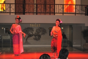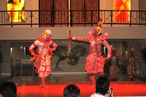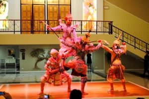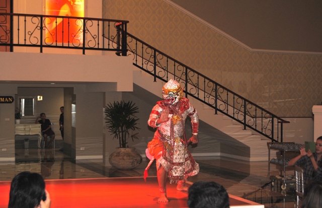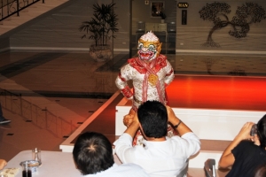 華麗なニューハーフ達により豪華なカリプソショーとは別に、2回のディナーの間に演じられるタイ古典舞踊は女性の踊り子数名が優美な舞を披露し、神の使いである猿のハヌマーンや美しいシーダ姫が登場する伝統舞踊の「ラーマキエン物語」も演じられ、、出演者はステージの上だけでなく客席の間も廻り、写真撮影にも応えてくれるサービスを提供してくれます。