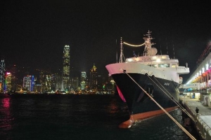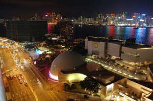 九龍半島側から見るならこちら!フェリー乗り場などがある海岸沿いの遊歩道です。こちらからは香港島側の沢山のビル群の夜景が綺麗に見えますし、ちゃんと音が聞こえる場所です。