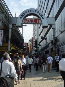 JR上野駅から御徒町駅までの区間に今では貴金属、輸入雑貨、食料品、衣料品、化粧品、ゴルフ用品などと、鮮魚、塩干物、珍味、海苔などを扱う店が入り混じって軒を並べています。良い品を安く買おうと思ったら、根気よく探せば何か掘り出し物を見つけられるスポットです。この区間は迷路のように小さなお店が連なっているので、迷わないように注意しましょう。