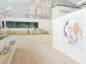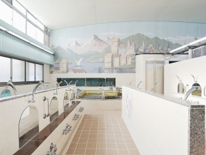 大田区の温泉のなかでも、ぜひおすすめしたいのが「改正湯」。2011年にリニューアルされたきれいな施設です。壁絵を眺めながらの入浴も銭湯の楽しみですが、ここでは、壁絵の下に魚が泳ぐ大きな水槽が設置されています。泳ぐ魚を眺めながら入浴するのは、なんとも楽しい経験です。ここの浴場にしかない黒湯炭酸泉や、超微細気泡が満ちて湯が白く見える「白湯」の浴槽もあります。