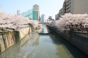 世田谷区から目黒区、品川区を通って東京湾に注ぐ延長8キロの目黒川。JR目黒駅近くの、約3.8キロの川沿いに約830本の桜が植えられています。水面に映る桜や、浮かぶ花びらはとても趣があります。桜が満開になると開催される桜祭りの際は、夜桜も楽しむことができます。